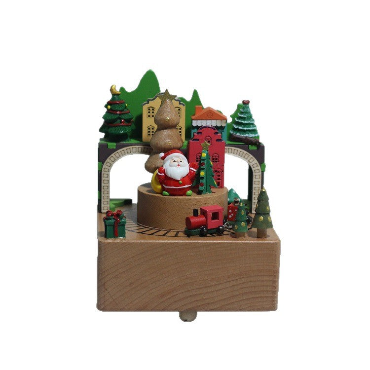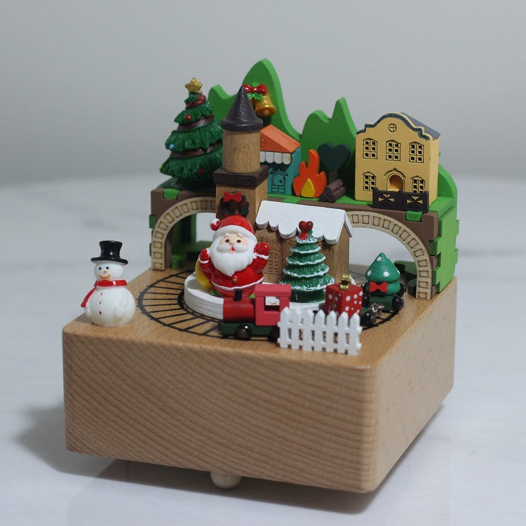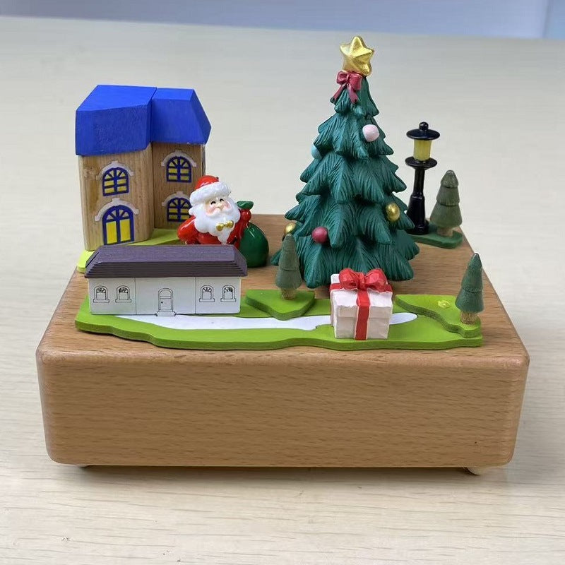 2025 New Christmas Music Box Wooden Crafts Creative Christmas Gift Merry Christmas Clockwork Music Box