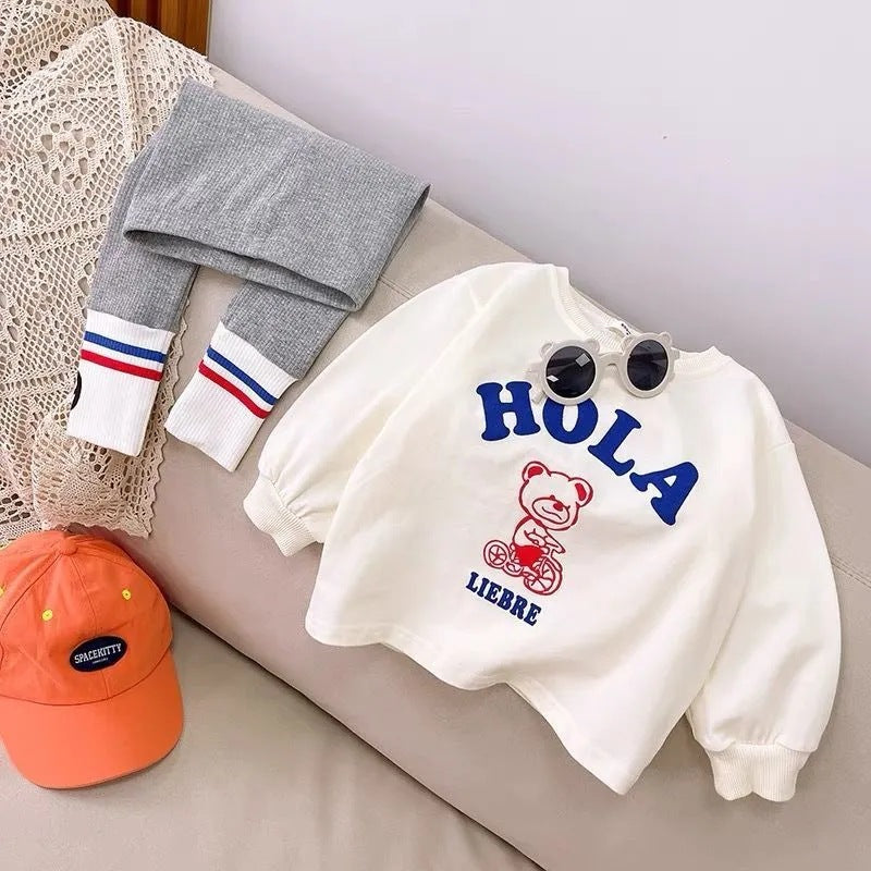 2025 New Girls Set Spring and Autumn Baby Foreign Cotton Soft Clothes Children's Fashionable Casual T-Shirt Two Piece Set.