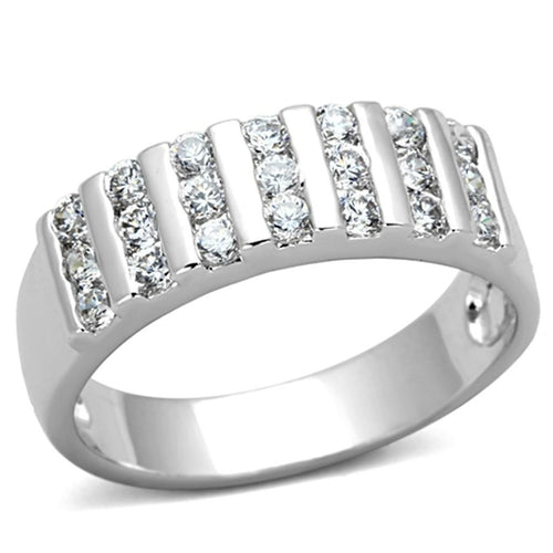3W488 - Rhodium Brass Ring with AAA Grade CZ in Clear