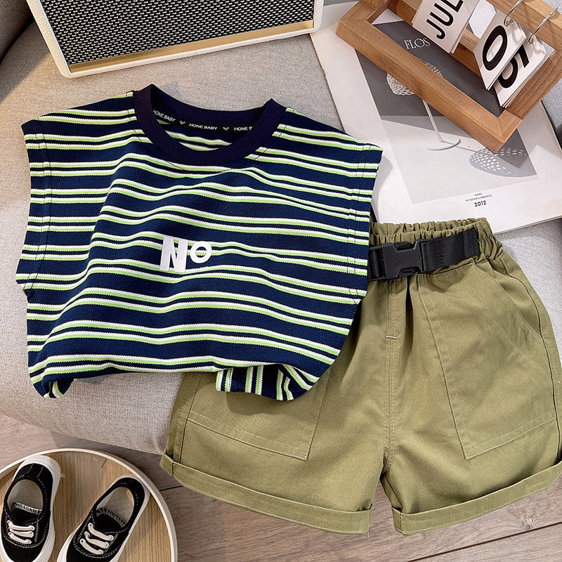 Boys Summer Set 2025 New Kids Clothes Baby Striped Clothes Vest Two Piece Shorts Kids Clothes