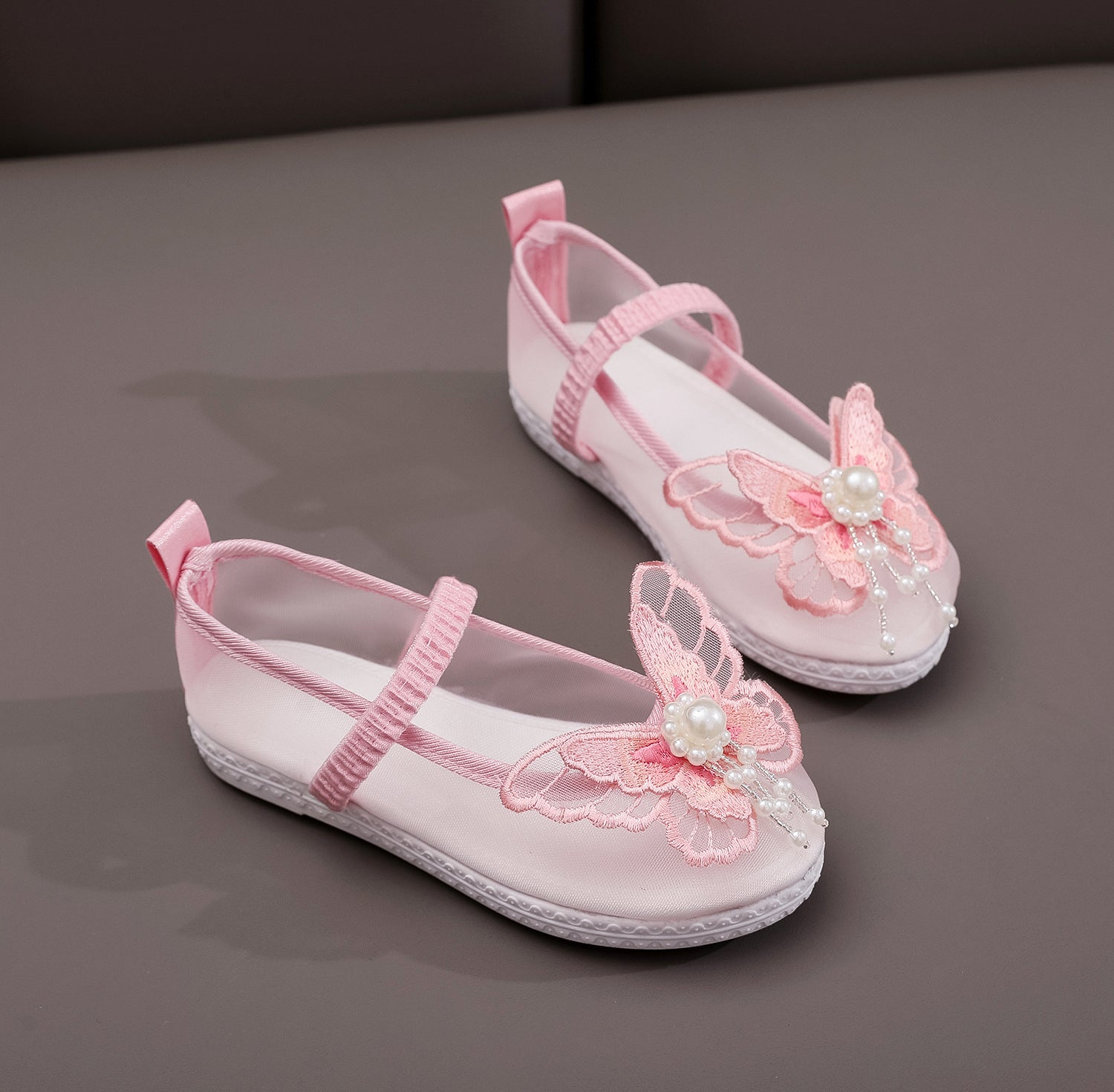 Children's shoes: Hanfu embroidered shoes, girls' mesh yarn, ethnic style, ancient costume embroidery, small butterfly shoes, children's dance shoes