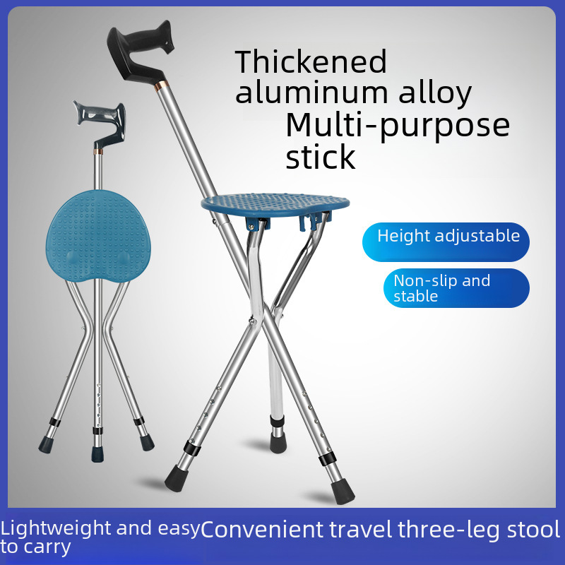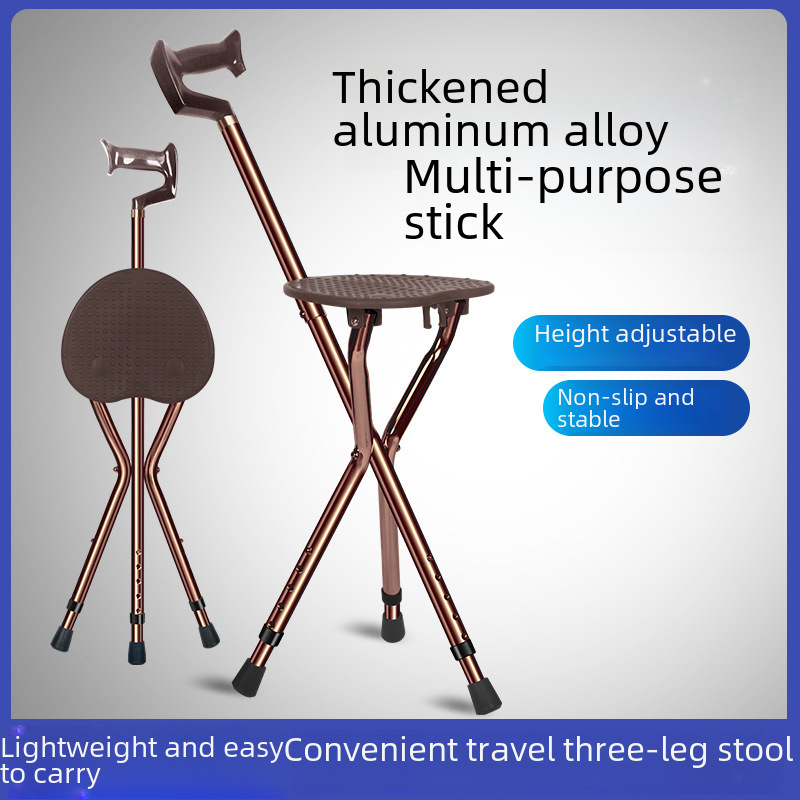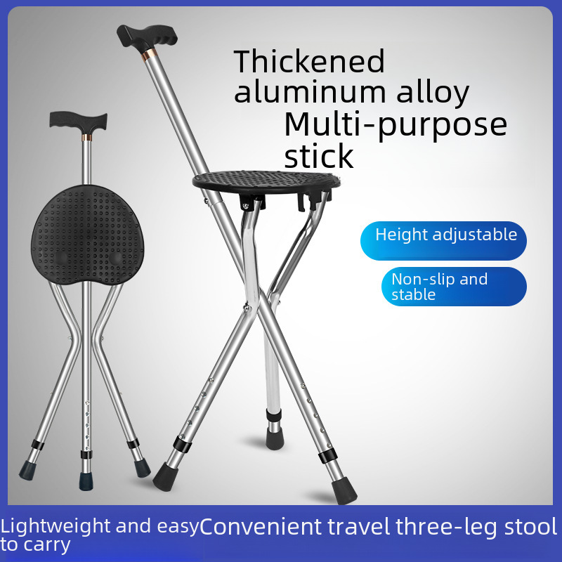 Elderly folding three-legged crutch stool cane aluminum alloy triangular cane stool middle-aged and elderly crutch stool adjustable