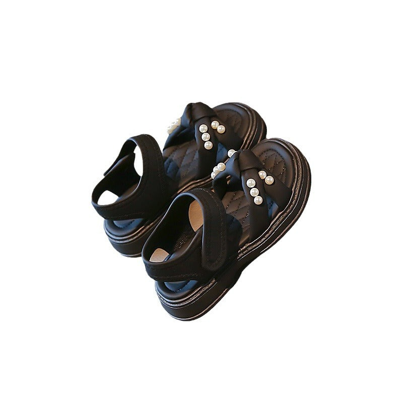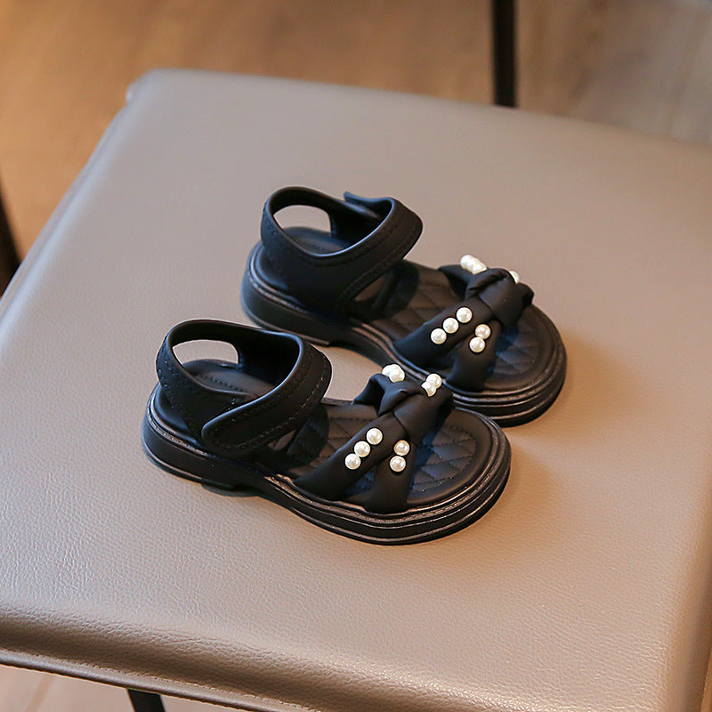 Girls Sandals 2024 Summer New Pearl Kids Shoes Summer Style Girls Foreign Princess Shoes Non-slip Beach Shoes