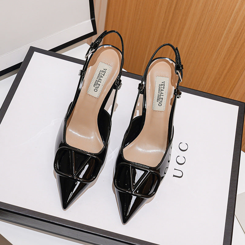 Grape mom studiolee 2024 new V-buckle French summer pointed toe single shoes high heel back hollow stiletto sandals women