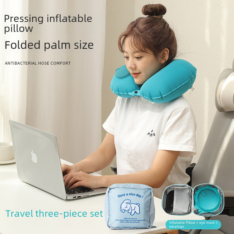 Inflatable U-shaped pillow, cool feeling, press inflatable pillow, travel portable neck pillow, travel three treasures, can be stored for airplane pillows