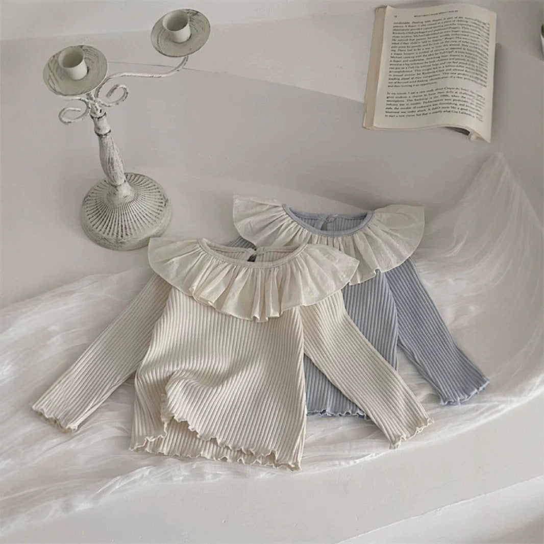 INS Spring and Autumn Infant Pit Strip Ruffle Collar Long-sleeved Top + Culot Two-Piece Sweet Set for Baby Girl
