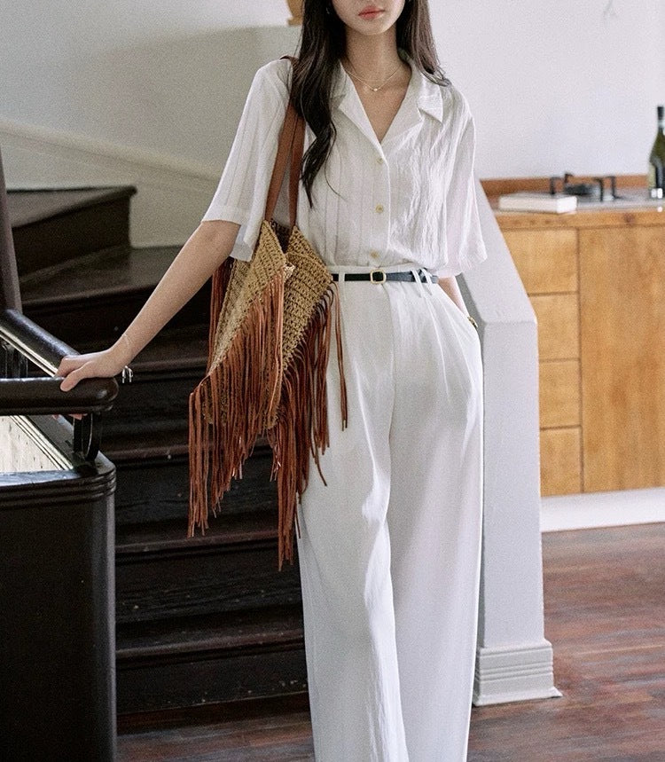 Jicouture "Nanyang Holiday" loose short sleeve Cuban collar shirt women's summer French vintage casual top