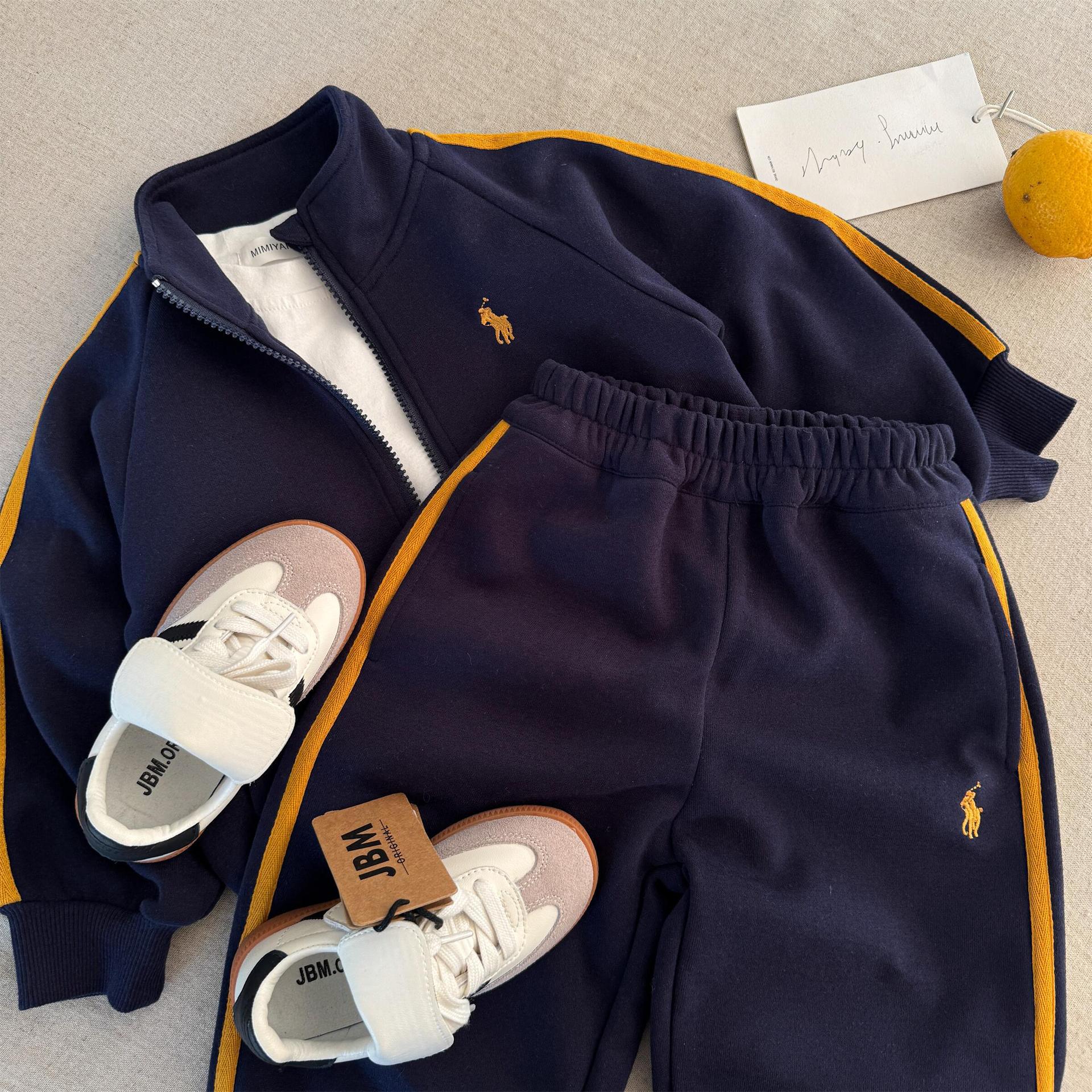 Little cloth bear children's set 25 spring and autumn new men's and women's embroidered sweatshirt set baby sports two-piece set trend