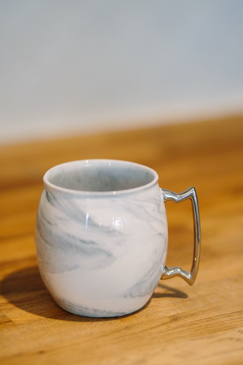 Give your morning coffee a Mule kick with this marble looking coffee mug in the shape of a Moscow Mule mug