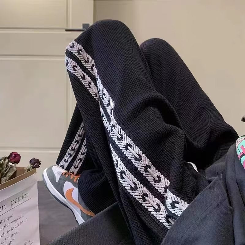 Men's extra large size 300 pounds plus size American high street waffle pants spring and autumn loose straight wide leg casual