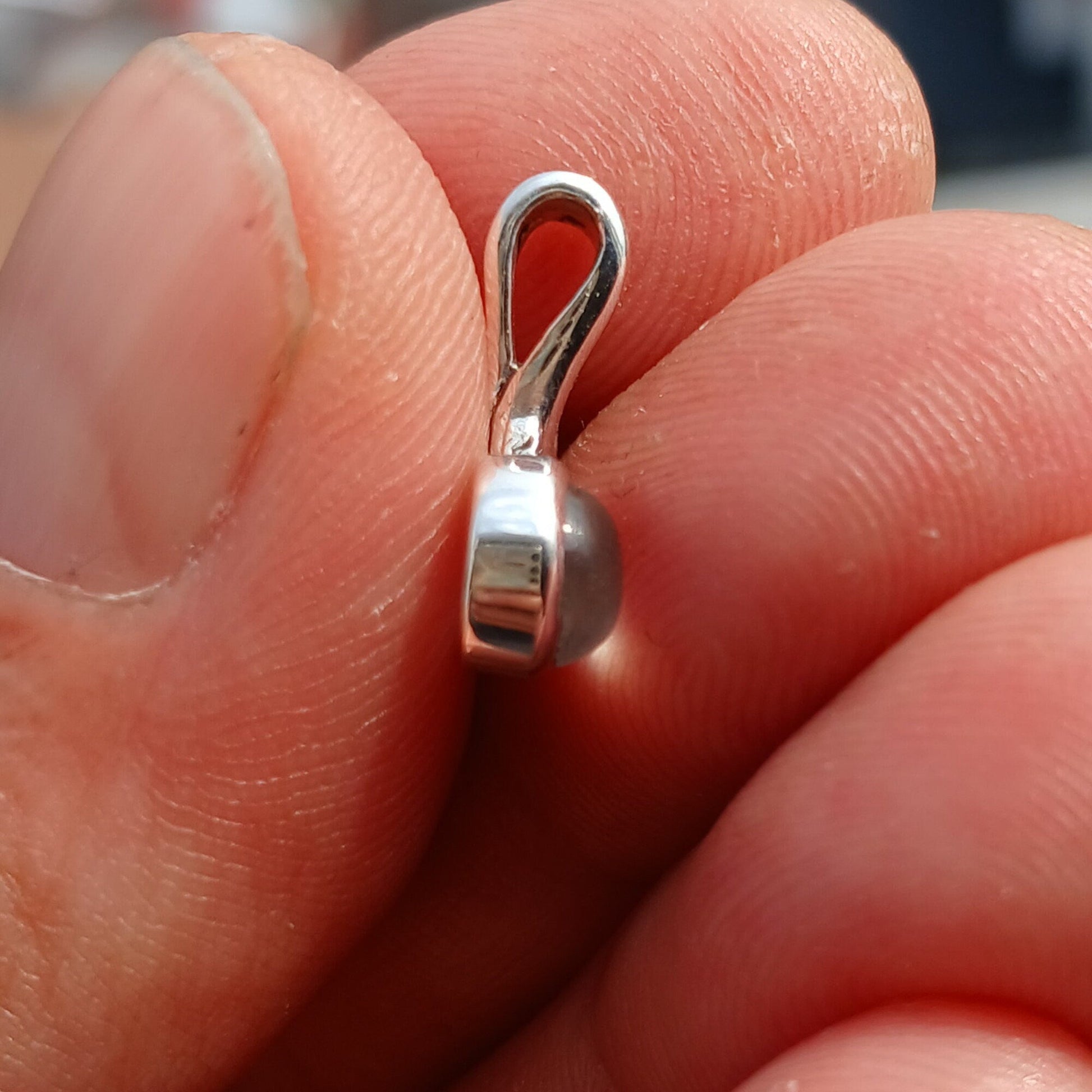The pendant's dimensions are 17 mm long, including the bail, and 12 mm wide, providing a dainty and feminine look. The bail, measuring 3 mm, allows for easy attachment to your favorite chain or necklace.