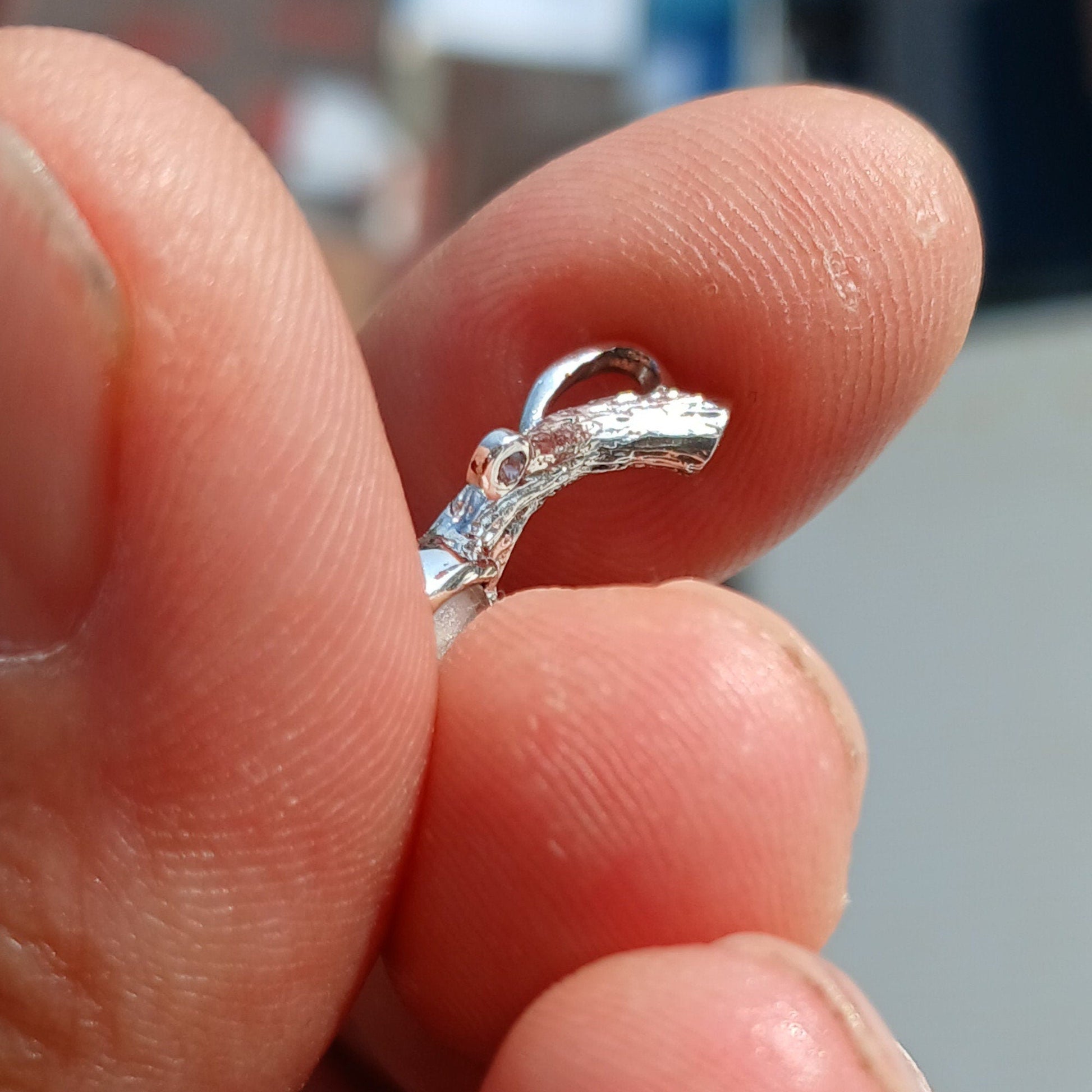 Crafted with precision, this Moonstone Charm Necklace showcases a 7 mm x 3 mm Moonstone, complemented by a 22 mm long pendant that includes the bail, and measures 11 mm wide. The bail itself measures 3 mm, adding a touch of uniqueness to this beautiful piece.