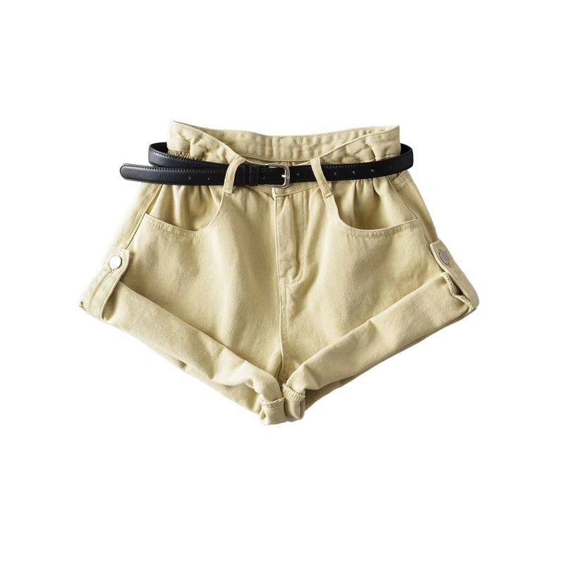 New Summer 2022 High-waisted Rolled Leg-Showing Wide-leg Pants Women's Jeans Cropped with Belt
