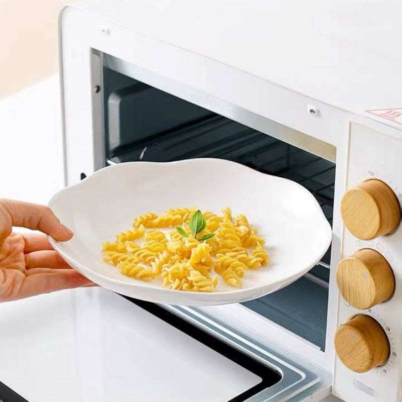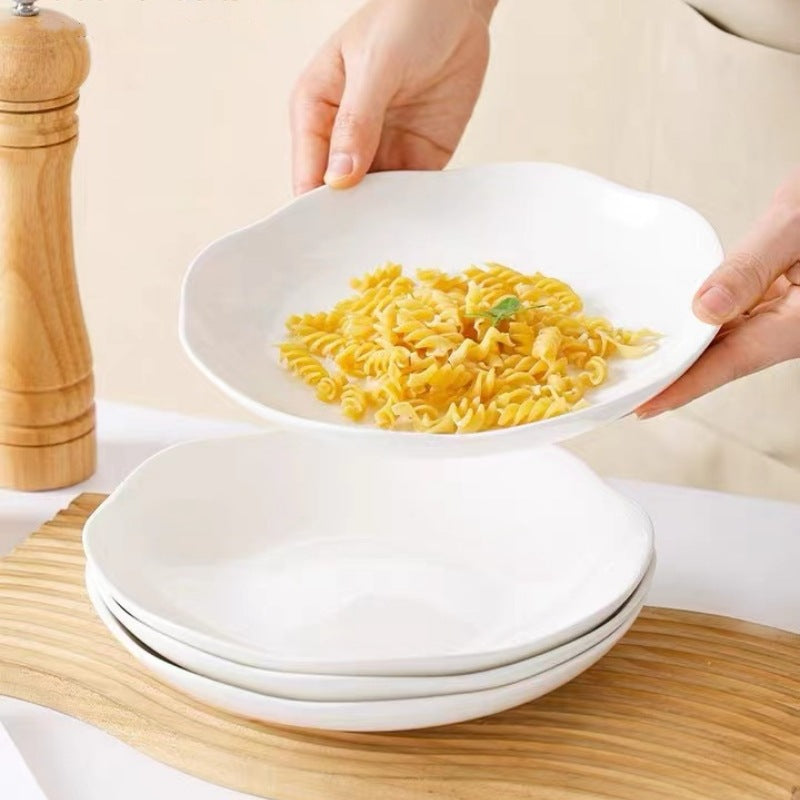 Pure white ceramic plate, vegetable plate, household simple tableware, underglaze colorful vegetable plate, deep dinner plate, Nordic creative lotus leaf plate