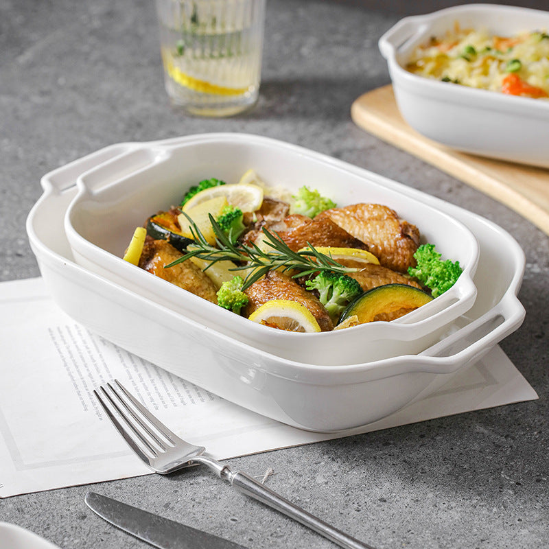 Simple pure white ceramic rectangular amphora baking dish cheese baking bowl high temperature resistant home baking bowl snack bowl steamed fish plate