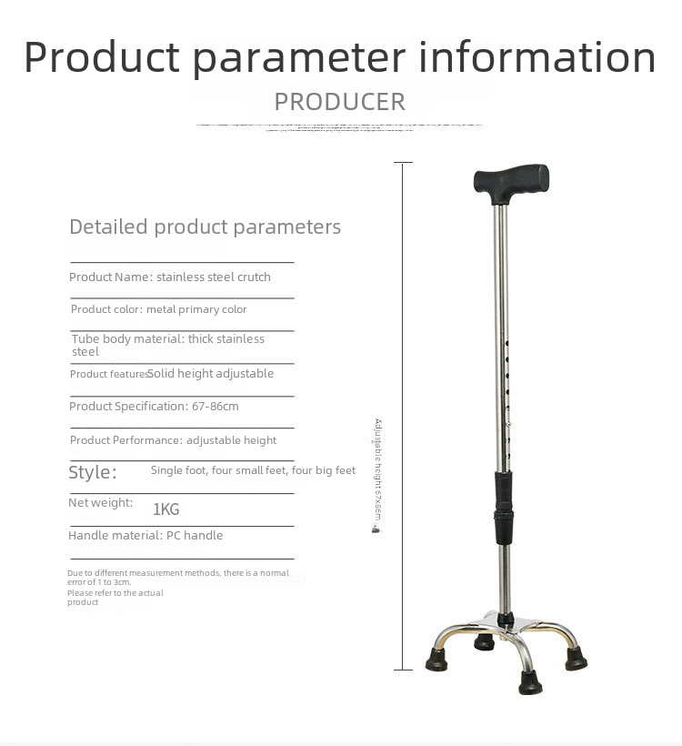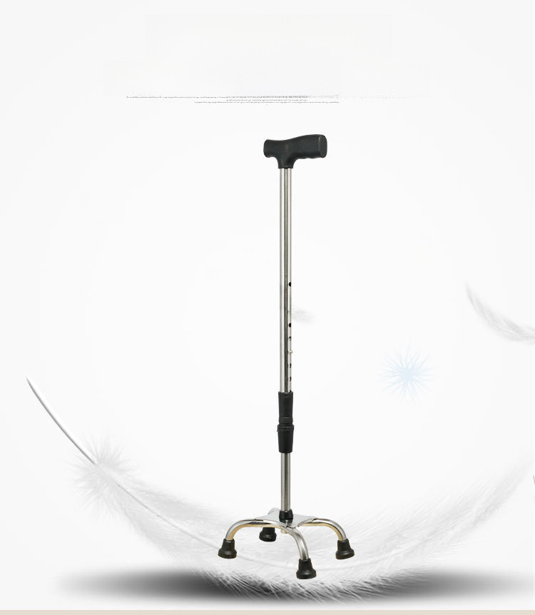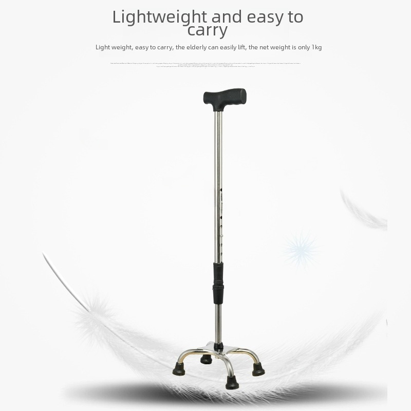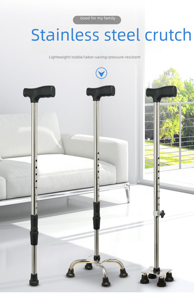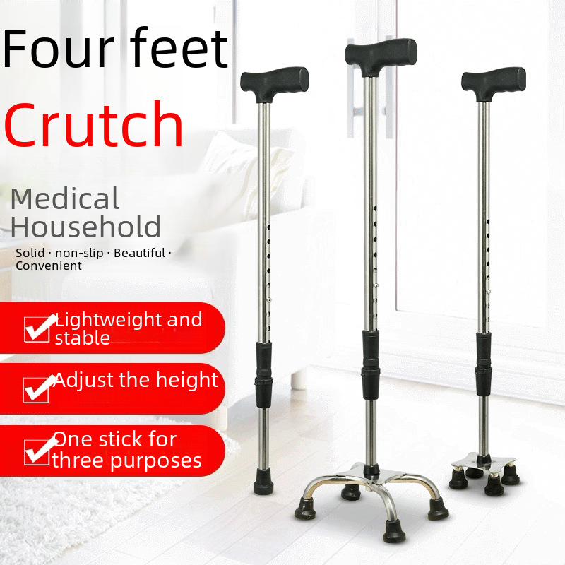 Stainless steel crutches for the elderly, four-legged crutches for the elderly, multifunctional four-corner non-slip walking sticks, telescopic crutches