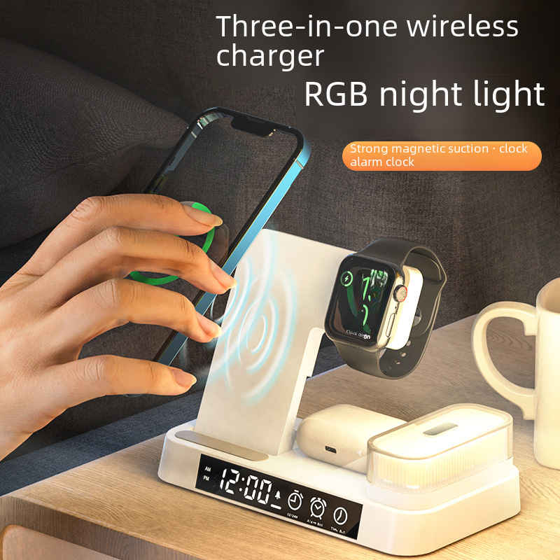 The multi-function desktop bedside 3-in-1 wireless charger holder is suitable for Apple, iPhone, watch, and headphones