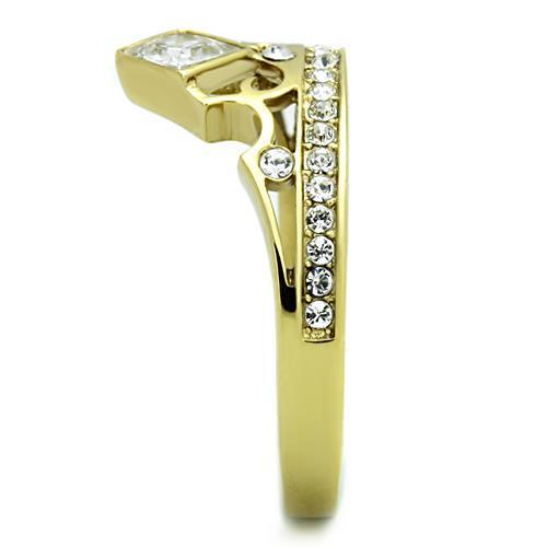 Women, Ring, Stainless Steel, IP Gold(Ion Plating), Cubic Zirconia, Clear